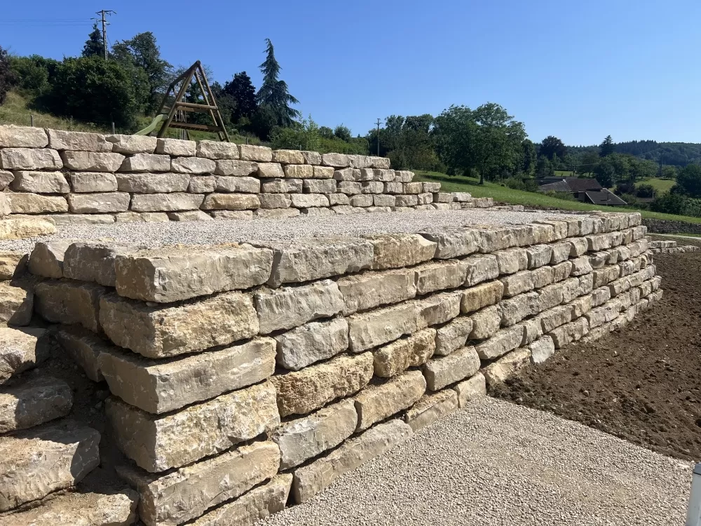 Votre entreprise de terrassement à Saint-Jean-le-Vieux a réalisé le terrassement préparatoire avant la pose des roches. Votre professionnel s'adapte à vos besoins pour réaliser la pose des roches au laser afin de rendre le résultat droit et symétrique.
